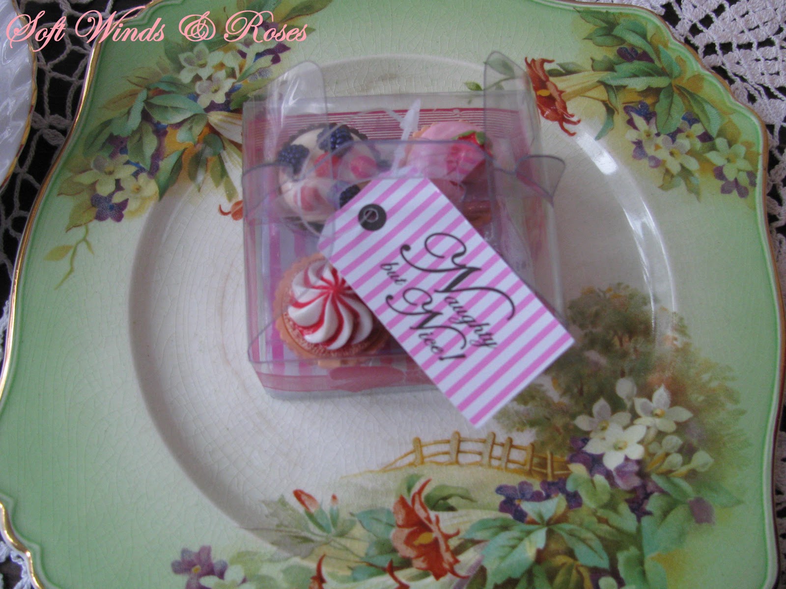 Don't they look cute together? And just look at those sweet little treats sitting there beside them! You'd never guess, but they're actually little lipgloss containers! Aren't they adorable? I found them recently in a small boutique and couldn't resist purchasing them, with the intent of using them as a wee little gift for someone sometime.